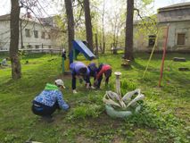 Была убрана территория вокруг школы, территория за забором школы, а так же территория вокруг спального корпуса.