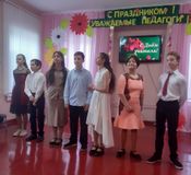 Это было особенное мероприятие, где ребята смогли выразить благодарность и признательность всем нашим учителям и воспитателям за их труд, заботу и преданность нашему образованию. Концерт открыли ребята 5 го класса трогательными стихами. Звучали песни, веселые частушки. Ребята 7-8 класса приготовили зажигательный флешмоб, а самая маленькая участница концерта Ульяна- танец " Топни ножка моя". Звучали знакомые песни о школе, первой учительнице. Зал с удовольствием подпевал. Об интересной жизни в школе ребята порассуждали в сценках -"Две старушки", "А я бы в школе сделал так..."