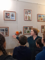 Здесь и кукла изготовления в артели, и коллекционное фарфоровые куклы, винтажные новогодние украшения, открытки, предметы из фондов музея. Новогодние настроение создаёт елка, украшенная игрушками из ваты ручной работы Натальи Исаевой. Здесь же устроена фотозона в виде традиционного Кашинского наличника с любимыми героями мульфильмов. Ребята с интересом слушали рассказ экскурсовода Анны Петровны об экспонатах выставки, задавали вопросы. В конце экскурсии ребятам было предложено сфотографироваться у фотозоны. Эксскурсия организованная Маловой Анной Петровной,как всегда очень интересная, познавательная,увлекательная. Большое вам спасибо! Дети и взрослые получили праздничные эмоции и предновогодние настроение.